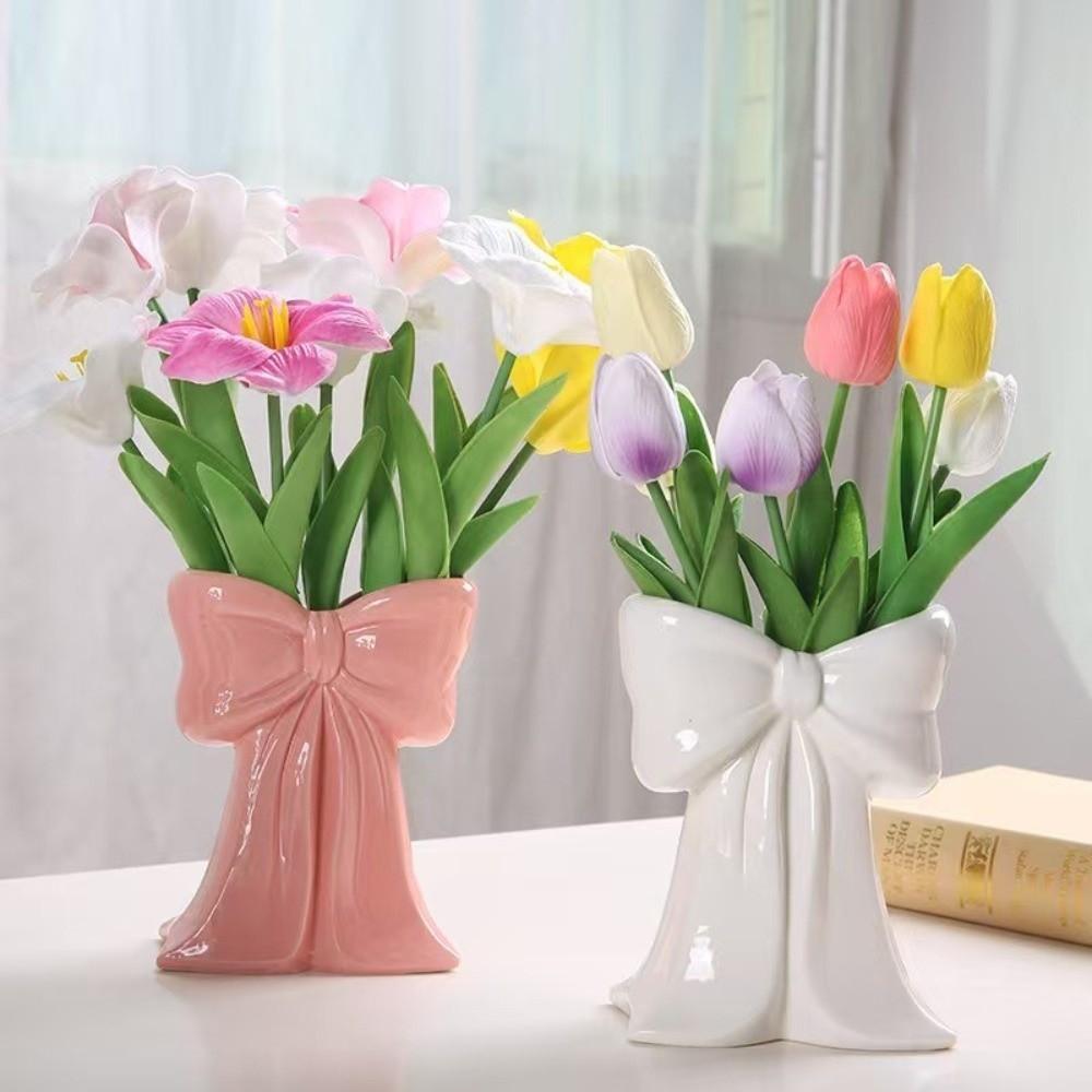 Handcrafted Ceramic Bow Vase Pink Coquette Ceramic Plant Pot Elegant Flower Vase Holiday Decor