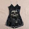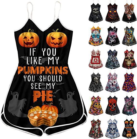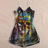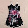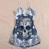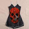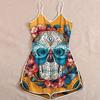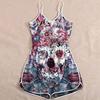 Wish Halloween print lady skull suspender jumpsuit