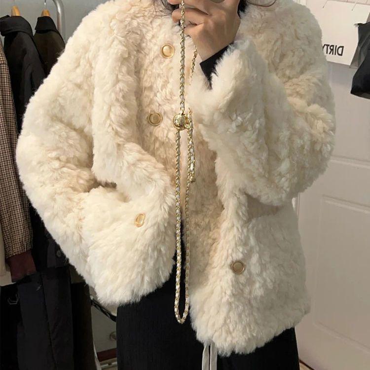 Women's Petite Chenille Angora Fur Coat - Winter 2025 Collection: Loose Fit, Plus Cotton, Stylish and Soft