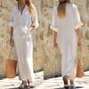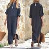 European & American Style Women's Loose V-Neck Plus Size Mid-Sleeve Split Maxi Dress