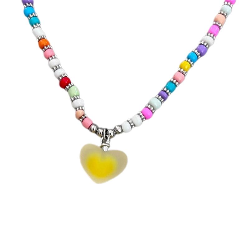 Cute Heart Bead Necklace Heart Charming Choker Chain Jewelry Girls Teen Eye-catching Snake Bone Chain Bowknot Necklace