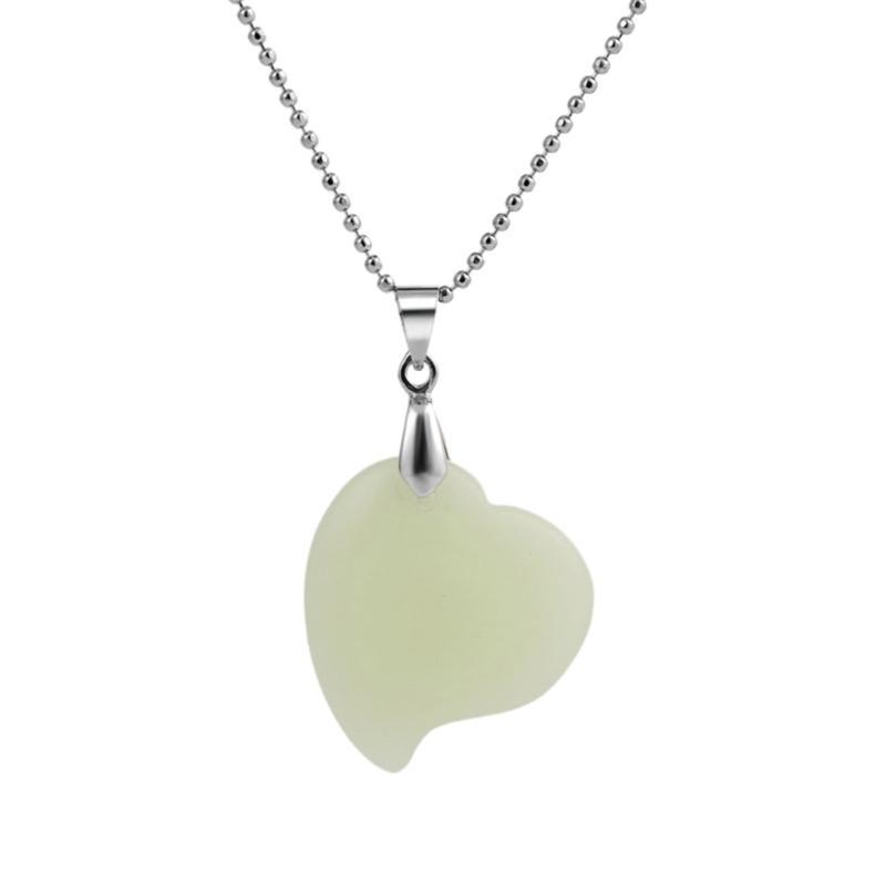 Novel Natural Stone Green Luminous Pendant Temperament Irregular Loves Heart Stone Crystal Necklace Gift Trend Jewelry