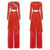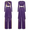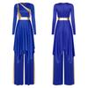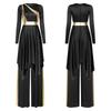 Women's Worship Dance Costume S-XXL: Round Neck Long Sleeve Metallic Shiny Patchwork Irregular Dress with Wide-Leg Pants for Church Performance
