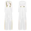Completo Lirico da Ballo Metallico Lucido da Donna Vestito Patchwork a Maniche Lunghe con Orlo Irregolare Set di Pantaloni a Gamba Larga