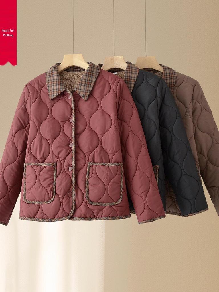 Stylish Velvet-Lined Cotton Jacket for Middle-Aged & Elderly Women - 2025 Autumn/Winter Collection