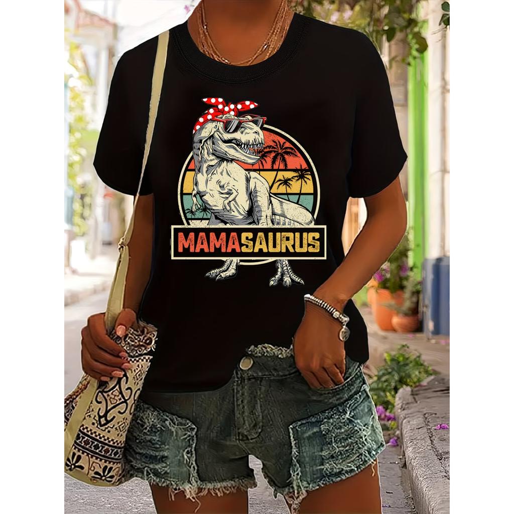 Mama Saurus Letter Print Short-Sleeve Round Neck T-Shirt