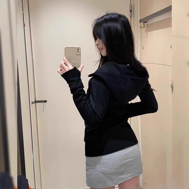 Women's Slim-Fit Hooded Jacket, American Style, Trendy Zipper Cardigan for Spring & Autumn, Versatile & Slimming Dopamine Dressing