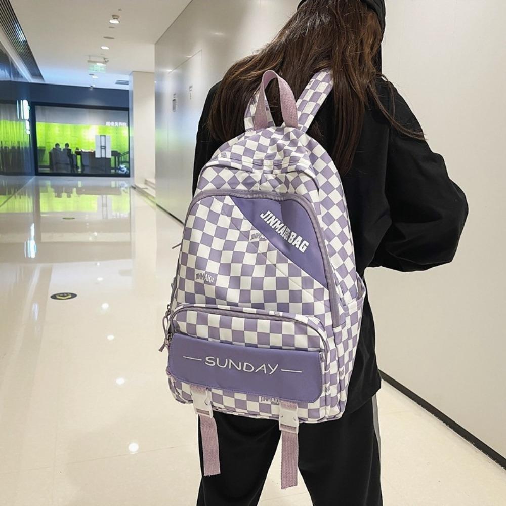 Korean version backpack checkerboard junior and high school students make-up schoolbag large capacity lightweight leisure outdoor travel backpack