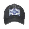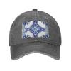 Unisex Baseball Hats Blue Ornate Floral Mediterranean Sicilian Tile Denim Outdoor Baseball Caps Hip Hop Cap Casquette