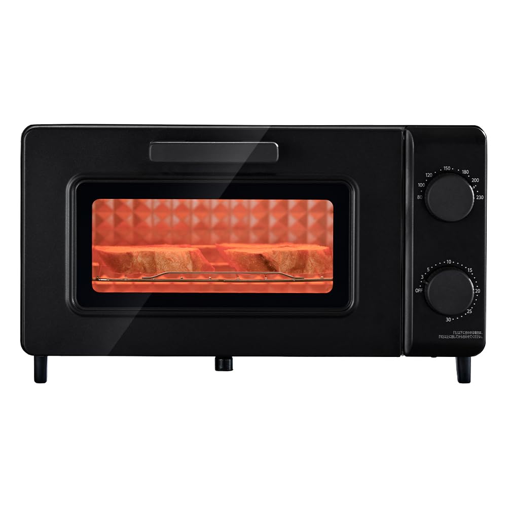 IRIS OHYAMA Toaster Stepless Temperature with High Black EOT-201AZ-B Oven, 2-Slice Capacity, Control, 1200W, Tray, 30-Minute Timer, Power,
