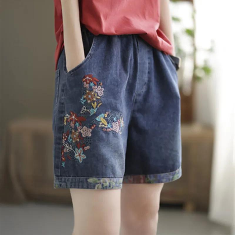 Women's Summer Korean-Style Elastic Waist Large-Pocket Denim Shorts - Loose-Fit Slimming Wide-Leg Pants