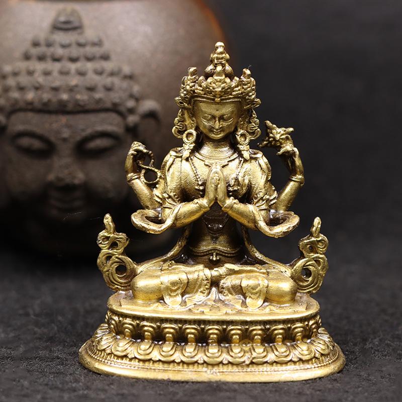 Antique Four-armed Avalokitesvara Bidhisattva Statue Desk Ornaments Tibetan Patron Saint Figurines Home Decoration Crafts