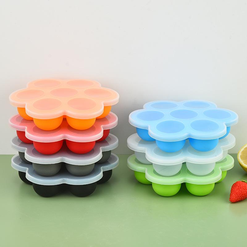 1PC Silicone Ice Grid Round with Lid Baby Food Box Silicone Jelly Box Ice Maker Flower Ice Cube Mold Kitchen Tools