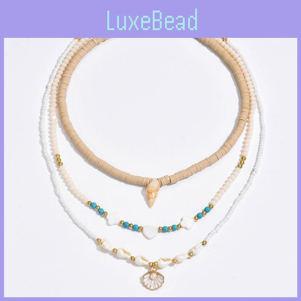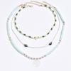 This beach-inspired shell necklace set features a multi-layered design with handcrafted beadwork and geometric shapes. Crafted from durable beads and alloy pendants, it offers a stylish accessory for summer beach outings or resort vacations. Easy to maintain with wipe-clean care, this trendy bohemian piece complements casual and festival outfits with its natural shell accents.