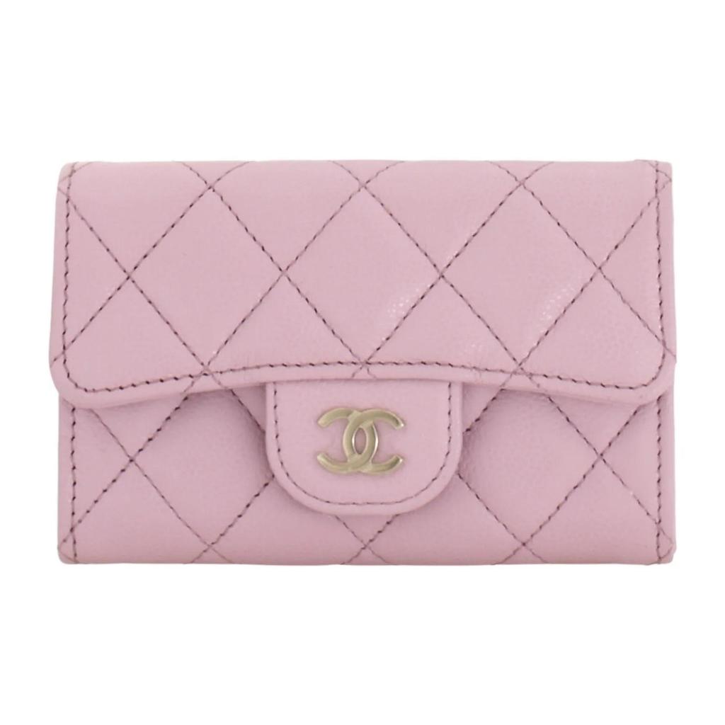 CHANEL 24A Light Gold Buckle Diamond Pattern Pure Color Grainy Lychee Pattern Leather Card Holder Women's Pink