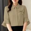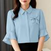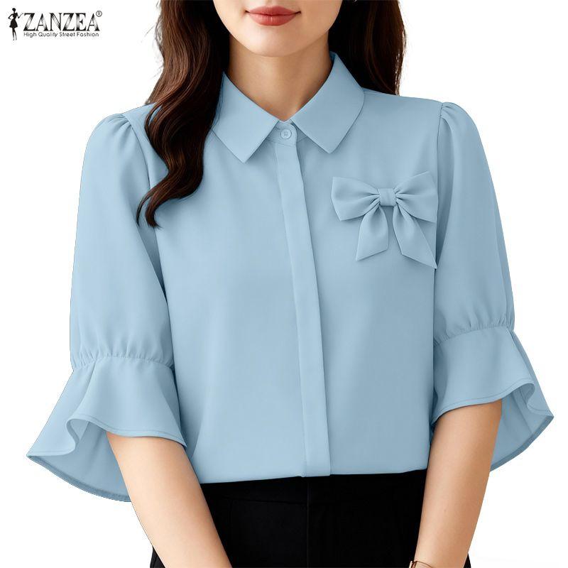 ZANZEA Women Casual Turn Down Collar Solid Color Half Sleeve Blouse