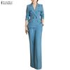 ZANZEA Women Short Sleeve Blouse and Cropped Pants Classic Two Piece Suit Sets