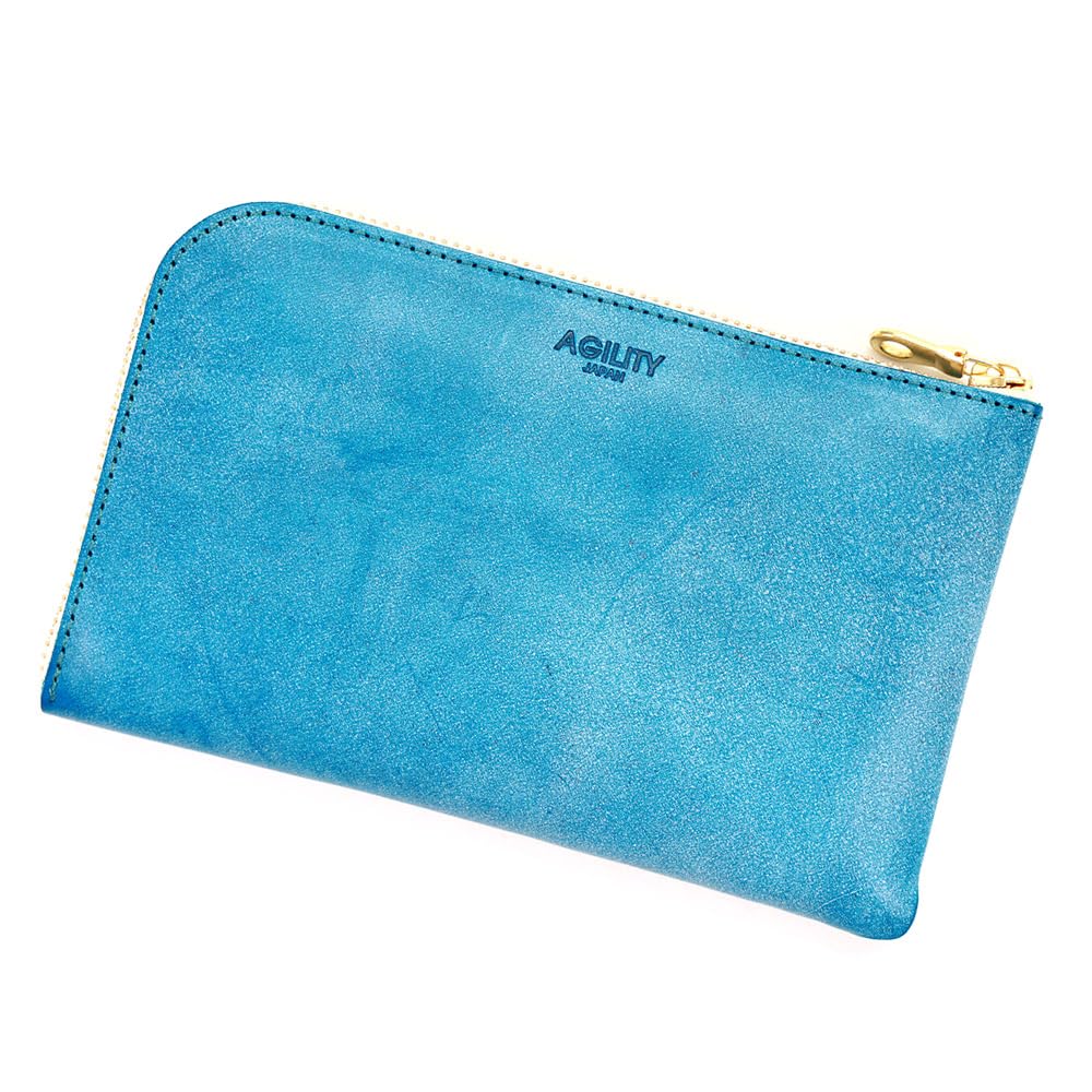 AGILITY affa Long Wallet with Travel Leather Wallet with Smartphone Pouch and Passport Turquoise Blue "Voyage" L-Shaped Zipper, Case,