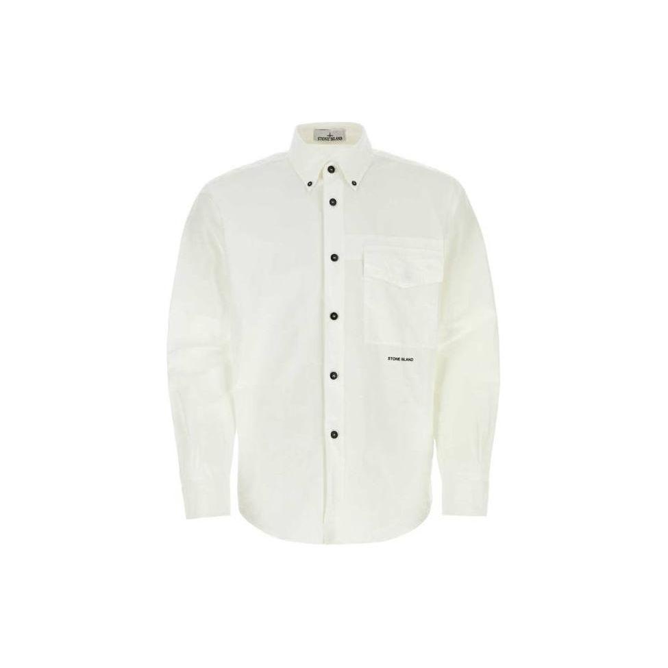 Stone Island Button-Down Collar Letter Print Long Sleeve Shirt Men shirts White 801511701-V0001