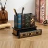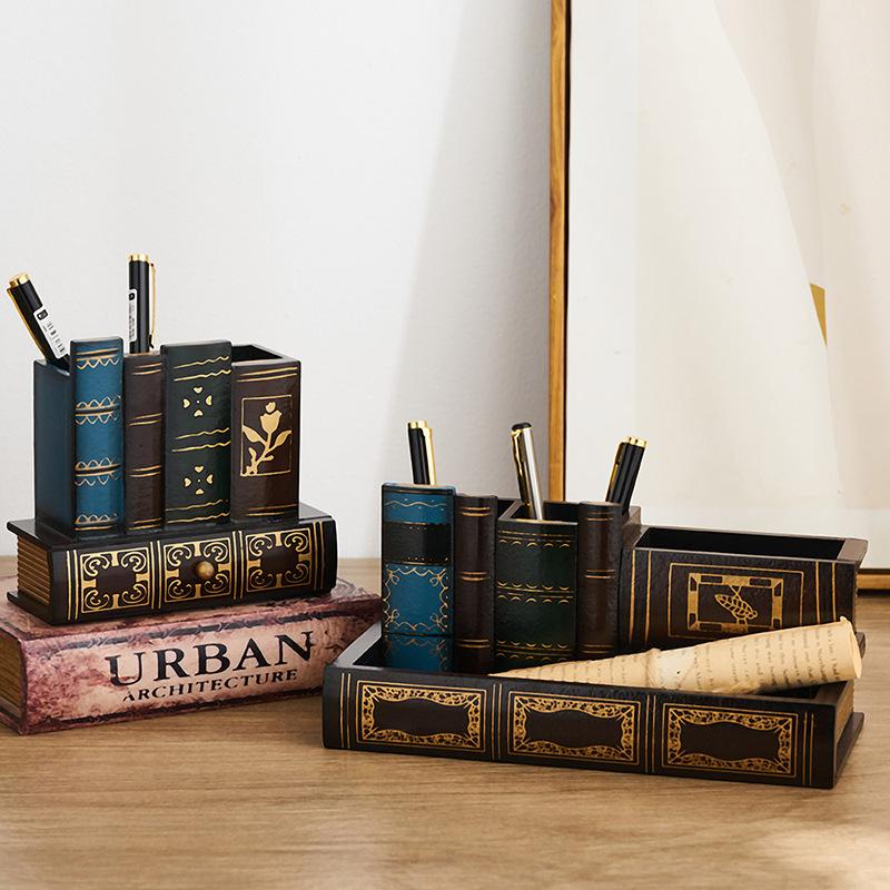 Vintage European Wooden Pen Holder - Creative Desk Organizer and Decorative Storage Box Home Office Organization and Storage