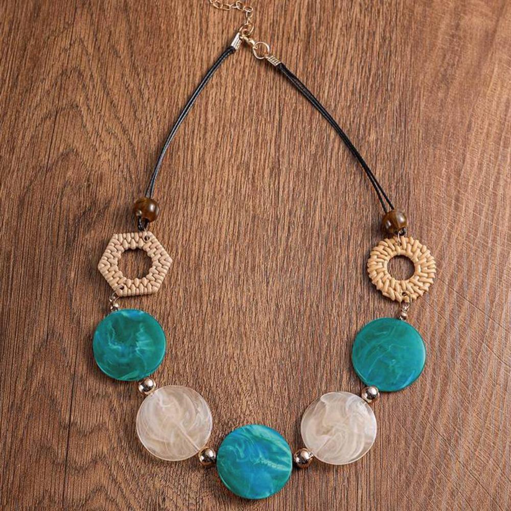 Vintage Vintage Rattan Necklace Acrylic Accessories Handmade Creative Color Contrast Necklace Geometric