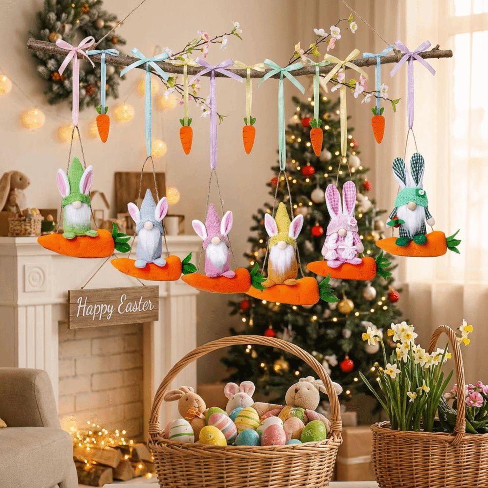 Colorful Rabbit Gnome Ornament Handmade Craft Faceless Plush Doll Easter Holiday