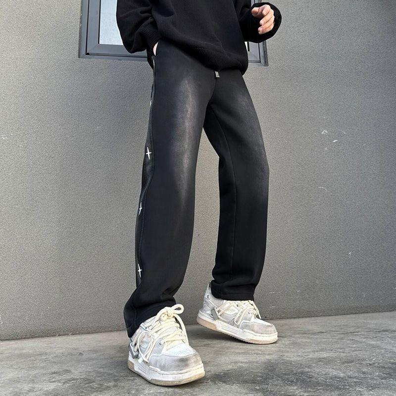Men's American Patchwork Distressed Autumn Winter Loose Straight Wide-leg High Street Versatile Casual Trousers
