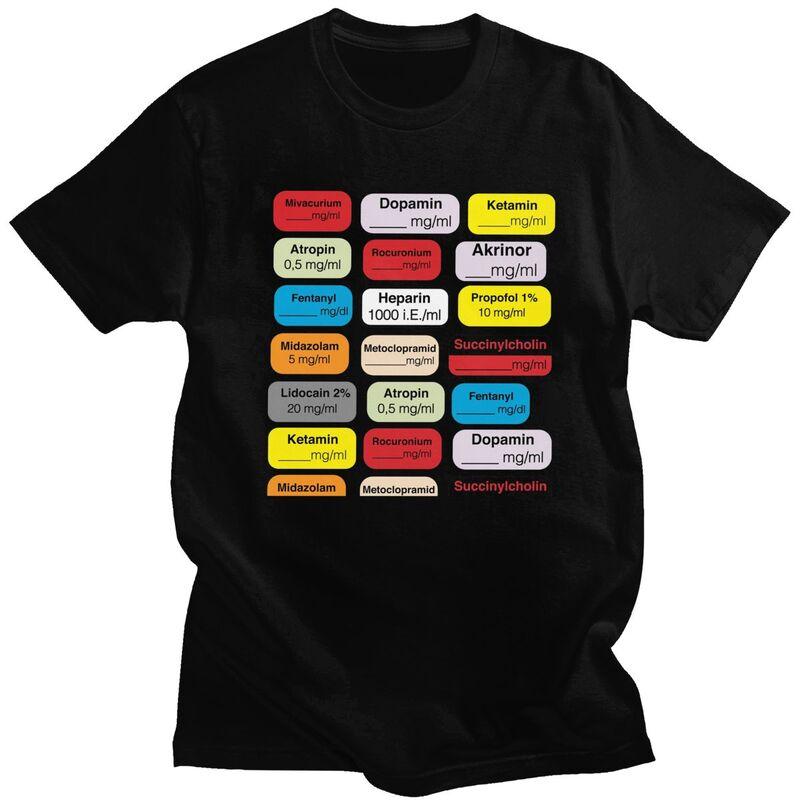 Custom Anesthesia Medication Labels T Shirts Men Pure Cotton Tee Tops Medical Nurse Tshirt Short Sleeve Fashion Tshirt Clothing