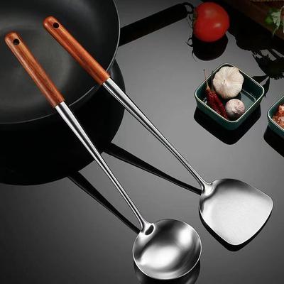 Set di Utensili da Cucina dello Chef: Manico in Legno Esteso, Wok e Spatola da Frittura in Acciaio Inossidabile 304, Mestolo da Zuppa