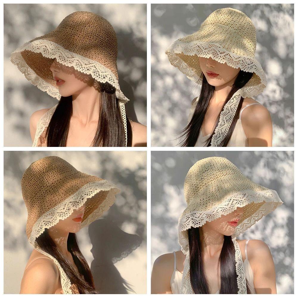 Foldable Lace Trim Hats Sun Protection Straw Sun Visors High Quality Straw Hat Women Girls