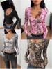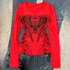 Y2K Spring and Autumn Printed Tight Fit Fit Top Round Neck Women's Wear