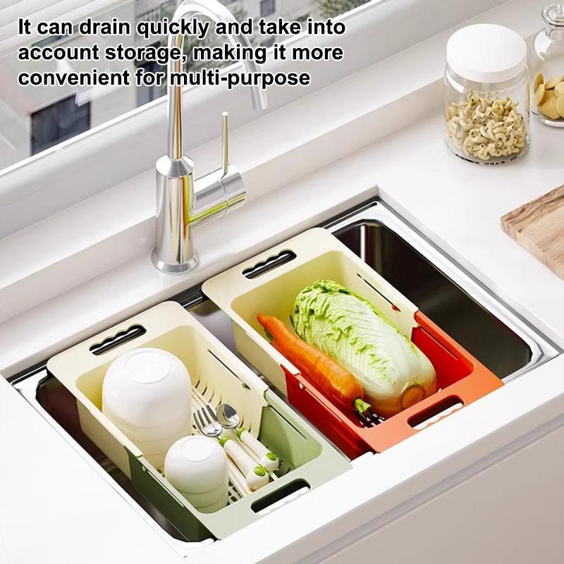 Cestello Scolapiatti Estensibile Salvaspazio da Appoggio sul Lavello Multifunzionale Portaoggetti Scolapiatti Non Perforato
