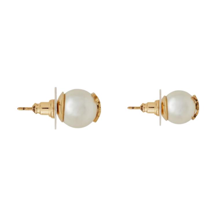 Saint Laurent Logo Design Pearl Brass Glass Earrings Women earrings White 6915639018Y1526
