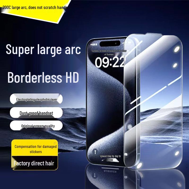 iPhone 17/16 Pro Max Frameless Tempered Glass Protector - Clear, Large Arc Design, Compatible with 13/14 Models