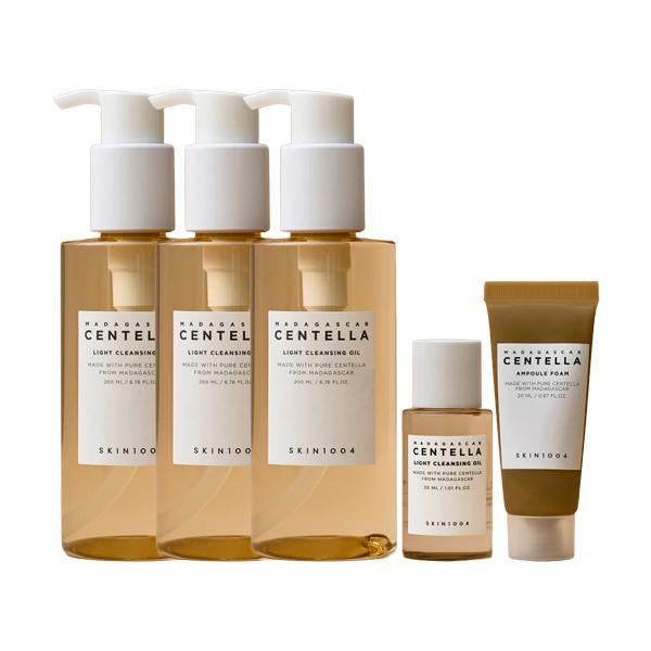 Achieve thorough yet gentle cleansing with the SKIN1004 Madagascar Centella Light Cleansing Oil Triple Set. Infused with Centella Asiatica extract from Madagascar, this set removes makeup, sunscreen, and impurities while soothing sensitive skin. The lightweight cleansing oil emulsifies easily with water, leaving skin soft and refreshed, while the ampoule foam provides a gentle second cleanse. Perfect for maintaining clean, hydrated, and comfortable skin every day.