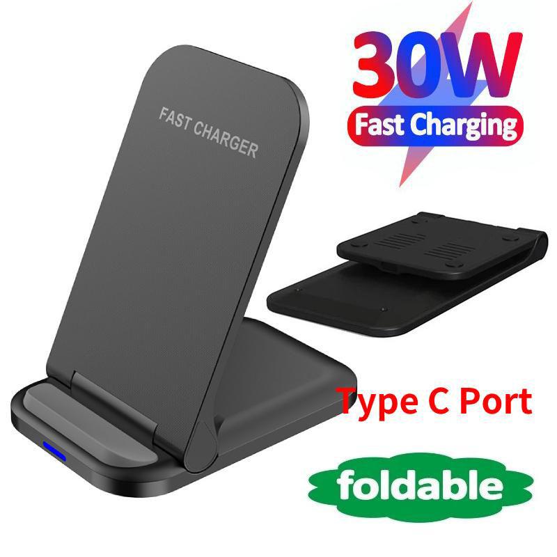 Supporto Caricabatterie Wireless 30W Pieghevole Qi Ricarica Rapida Stazione Dock Porta Telefono per iPhone 13 12 11 Pro Max XR Samsung S20 Caricabatterie per Telefono