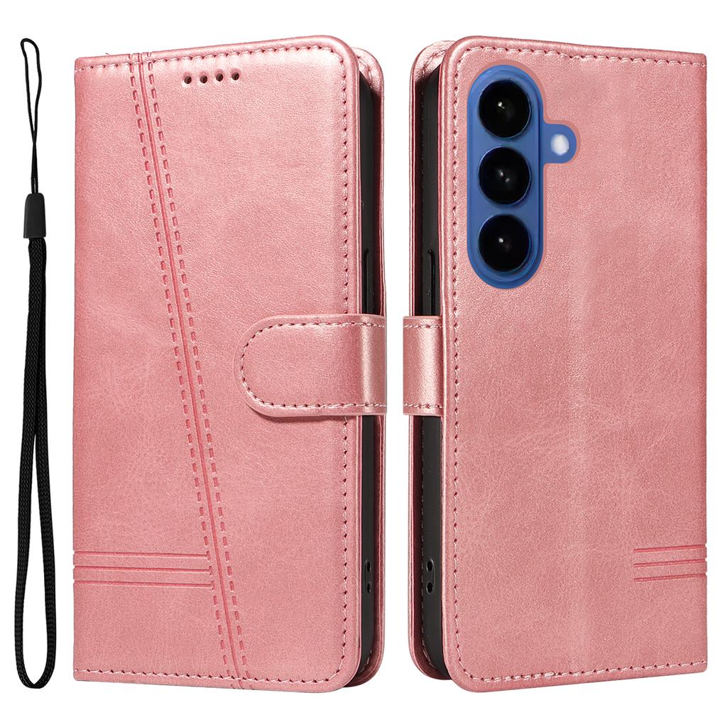 Luxury Line Cards Solt Wallet Flip Leather Phone Case For Samsung S26 Ultra S25 Plus S24 A06 A17 kickstand Bag Book Strap Cover