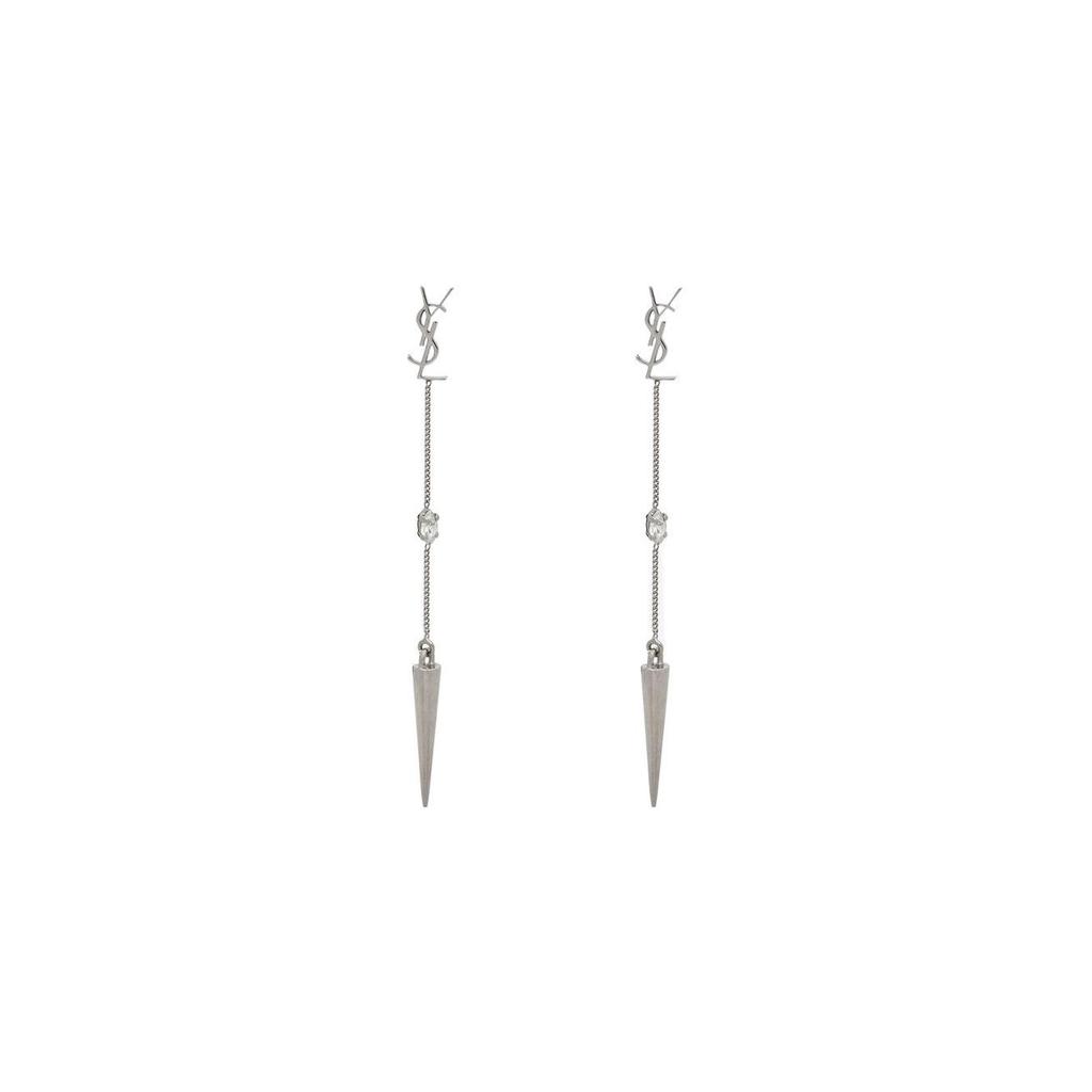 Saint Laurent Apym Brass Glass Rhinestone Spike Earrings Women earrings Silver 710726Y15268162