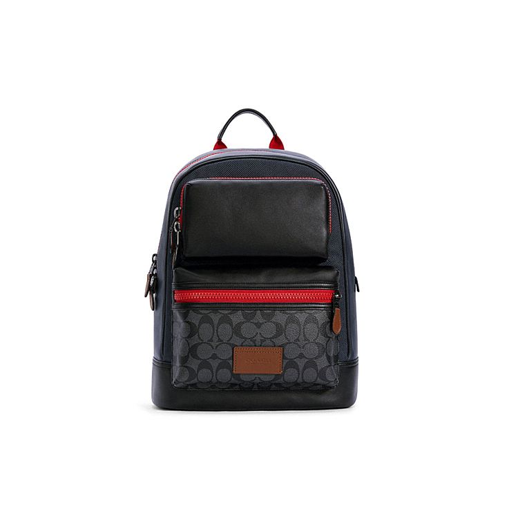 Coach Rider Printed Color Block Coated Canvas And Calfskin Backpack Men Backpacks Dark-Blue C4146-QBSP8