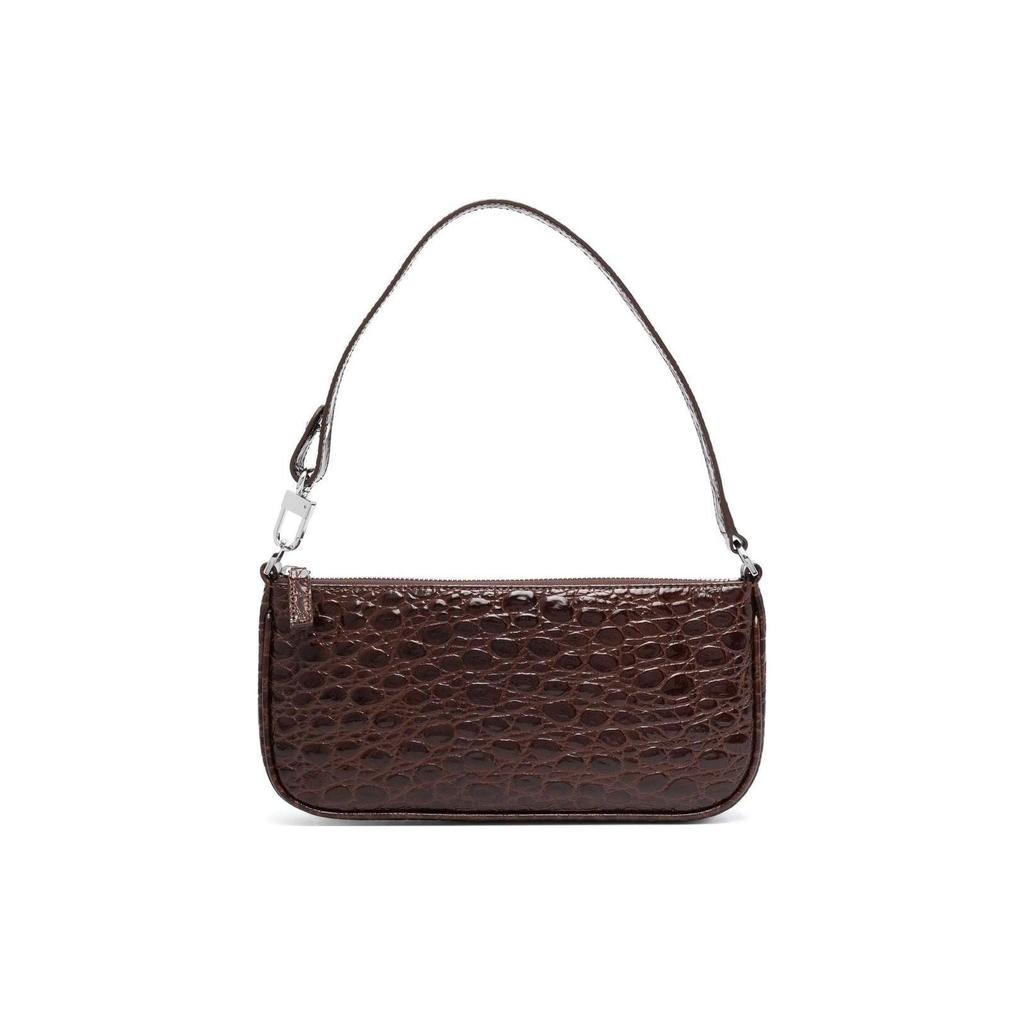 By Far Crocodile Pattern Embossed Zipper Closure Leather Mahjong Bag Handheld Shoulder Bag Women bags Brown 22PFRCLSSEQCCEMED