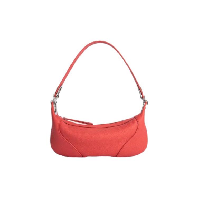 By Far Mini Amira Zipper Closure Fashion Solid Color Pebbled Leather Underarm Bag Women Handbags Coral 22SSMINRSCRAFLTMED-127410