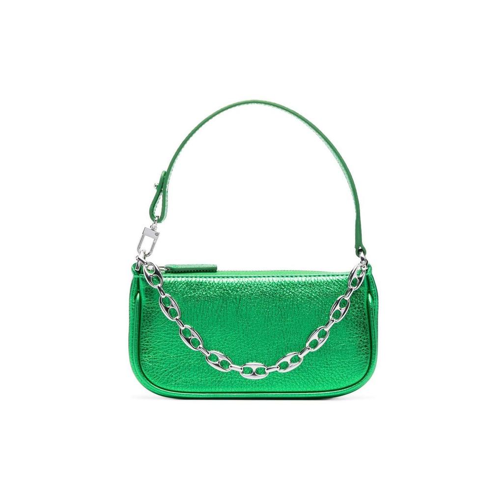 By Far Rachael Hardware Chain Shoulder Strap Zipper Closure Leather Mini Shoulder Bag Women handbags Green 22FWMIRACNMEGSMA