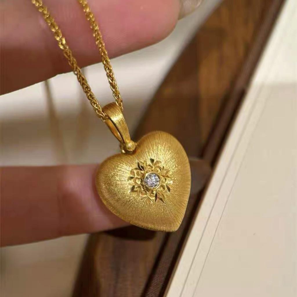 Buccellati Craft Weaving Carved Gold Brushed Silk Love Necklace With Diamonds Vintage Pendant Embossed Chopin Chain
