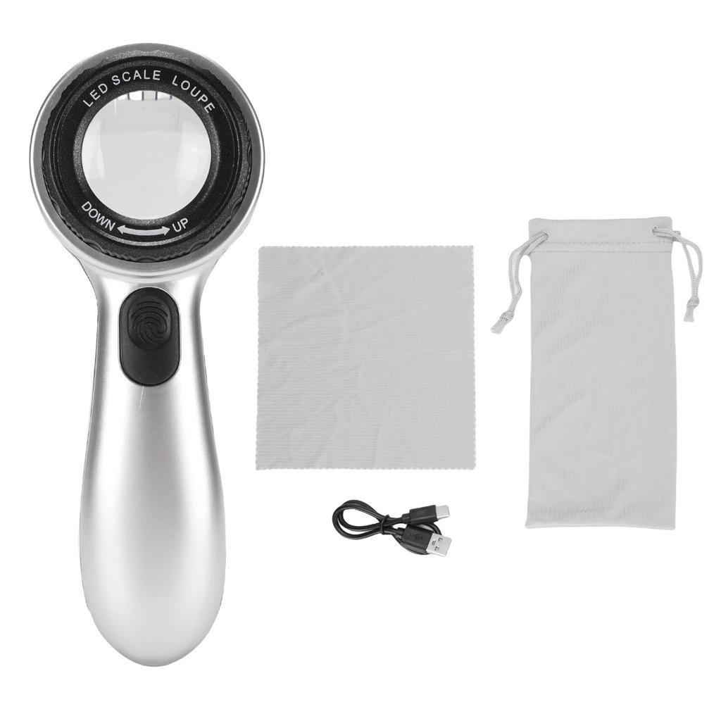 30X Handheld Magnifier LED Lighted Rechargeable Magnifying Glass for Jewelry Calligraphy Inspection 4 Lighting Modes