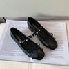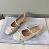Light luxury word with Mary Jane shoes thick heel single shoes bow fattened and widened large size women's shoes