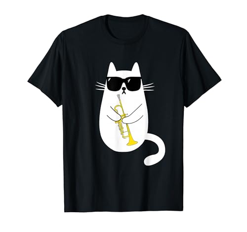 This cool design of a cat wearing sunglasses holding a trumpet is a must-have for cat lovers, as well as trumpet players. It's the perfect surprise gift for cat owners, cat owners, and music lovers, as well as for classical music and brass enthusiasts! It would also be great for members of a brass band or orchestra to wear matching outfits! This cool design of a cat wearing sunglasses holding a trumpet is the perfect gift for trumpet, brass band, and classical music lovers! It's perfect for yourself, or as a surprise gift for family and friends! This design will be appreciated by cat owners, cat lovers, and anyone who loves cats, as well as trumpet players, classical music lovers, jazz music lovers, brass band and junior orchestra members, and anyone who loves music and the horn.