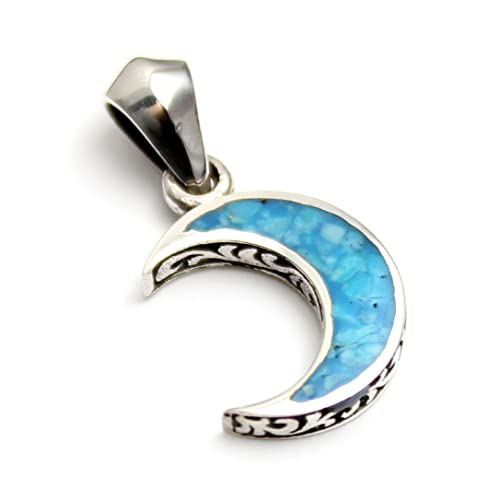 [World Accessories Carmelo] Mexican Turquoise Moon and Crescent Moon Pendant Good Vibrations for Men and Women, 925 Sterling Silver