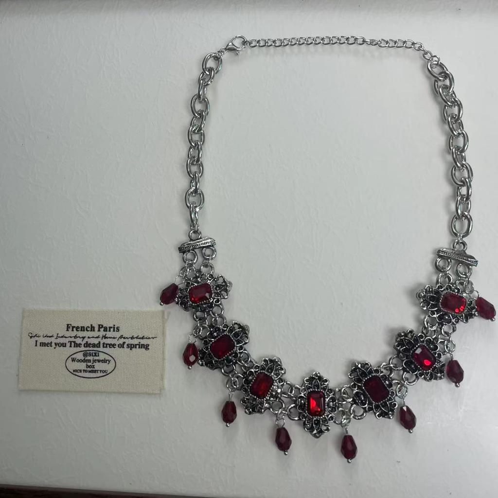 Retro medieval style diamond-encrusted crystal fringed necklace Gothic style sweet and cool light luxury sense niche collarbone chain new model