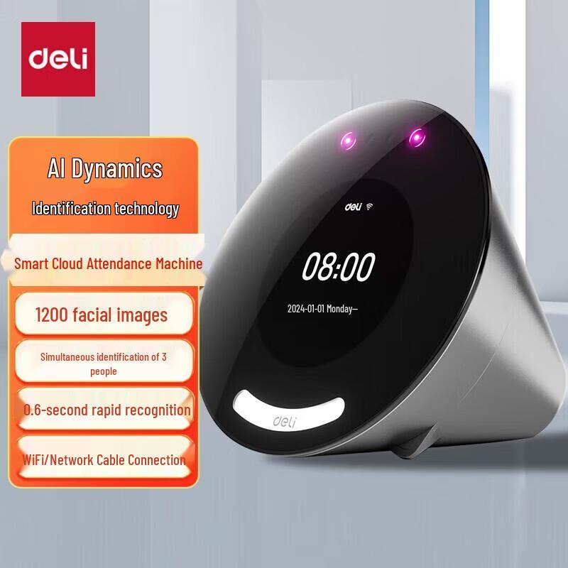 Deli D65C Smart Dynamic Facial Recognition Time Clock CN plug (adapter included)