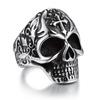 U7 Stainless Steel Big Skull Rings for Man Woman Size 7-14 Cross 3D Skeleton Cuban Chain Celtic Knot Pattern Gothic Punk Jewelry